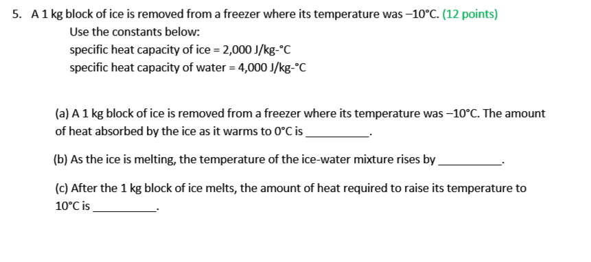 Solved 5 A 1 Kg Block Of Ice Is Removed From A Freezer Chegg Com