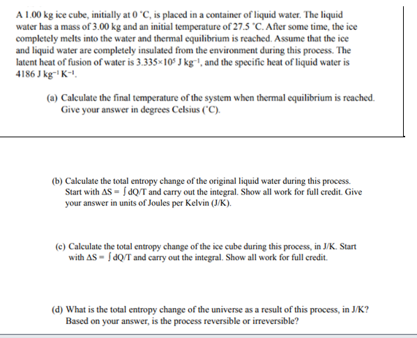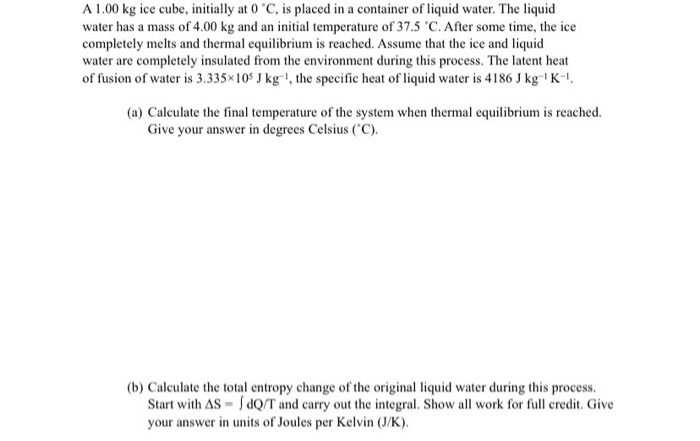 How Much Does The Entropy Of 1 Kg Of Ice At 0 C Change As It Melt Into Water At 0 C When It Is Strirred By A Paddle Wheel Quora